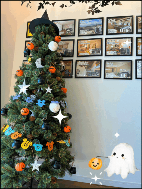 🎄店舗入口に「ハロウィン仕様のツリー」がお目見え!