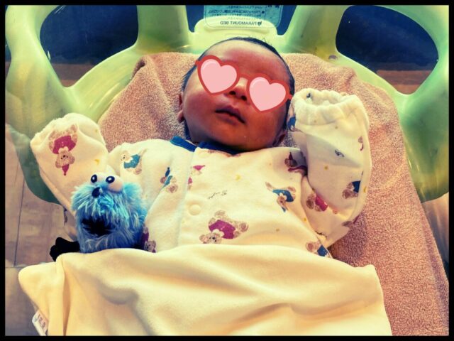 病院のコットでスヤスヤ眠る我が子![]()