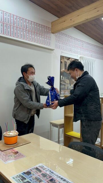 こちらは事務所にて、みんなで柿沼主任のお誕生日のお祝いです🎁